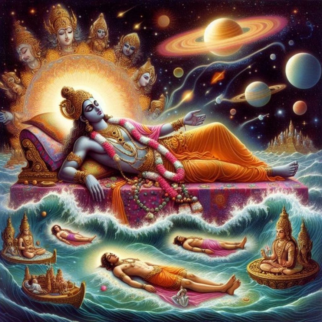 Živo bitje (duša) se nahaja oz. je zaprta v materialni sferi bivanja. Živi v matrici ali sanjah in pravzaprav v svoji nevednosti spi. Saj so sanje in budnost, ki jih doživljamo, samo sanje Maha Višnuja, ki leže v yoga-nidri na vzročnem oceanu. Zavest čiste duhovne duše v resnici nikoli ni v nevednosti oz. je zmeraj sac-citt-ananda (večna, polna znanja in blaženosti) vendar pa, ko zlorabi svojo majhno neodvisnost, jo Vsevišnji Gospod prekrije z njegovo zunanjo energijo bahirango-mayo. Vsevišnji Gospod pravzaprav ustvari popolni sanjski svet in z njo prekrije dušo. Duša v tem sanjskem svetu igra kontrolorja materialne narave.